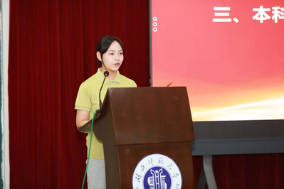 在新生代表发言环节,本科生代表郑婷婷结合自身的军旅经历,生动讲述了在军营熔炉中如何深刻体悟到“诚、毅、勤、敏”的校训真谛。她以铿锵话语,将汗水凝结的成长故事与校训精神紧密相连,赢得了全场共鸣。
