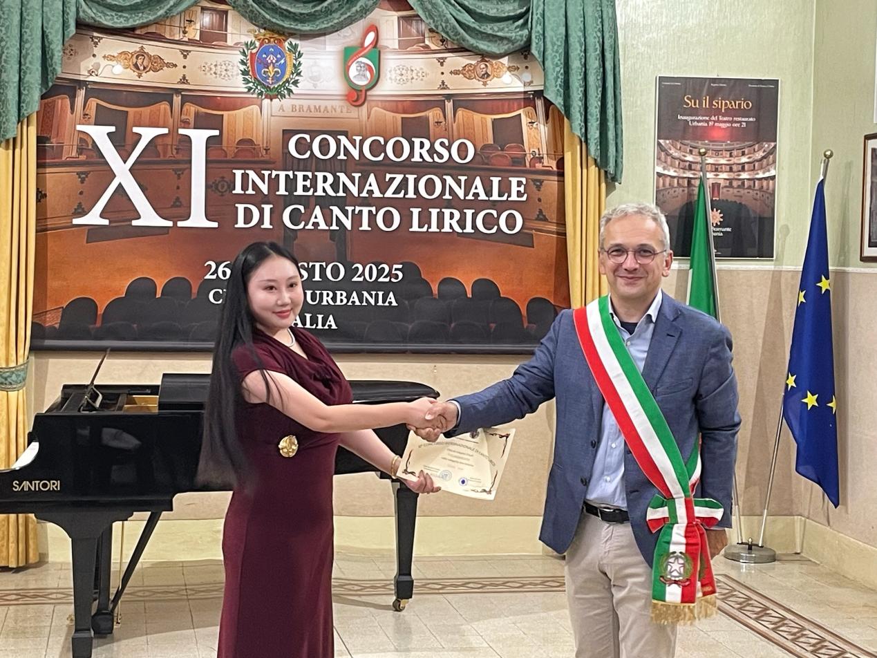 2025年7月26日,意大利第十一届乌尔巴尼亚国际声乐比赛(11° Concorso Internazionale di Canto Lirico Città di Urbania, ITALIA)在意大利圆满落幕。湖北师范大学音乐舞蹈学院音乐表演系青年教师、声乐博士、抒情女高音宋鑫老师在此次比赛中表现优异,荣获“歌剧咏叹调组”与“艺术歌曲组”双项一等奖的好成绩,以其精湛的演唱技巧和艺术表现在本次比赛中脱颖而出!