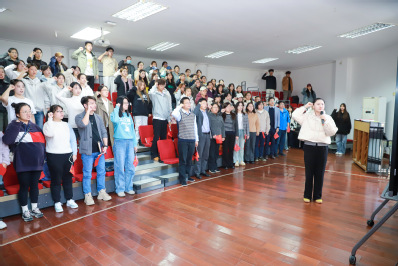 活动最后,进入“颂团结之歌”环节。在中华民族最危险的时刻,“团结”二字凝聚起四万万同胞不可战胜的力量。现场师生挥舞手中的小国旗,在音乐舞蹈学院刘晨升同学的领唱下,共同唱响经典歌曲《团结就是力量》。嘹亮的歌声气势如虹,将活动氛围推向高潮,也让大家深刻体会到团结的磅礴力量。