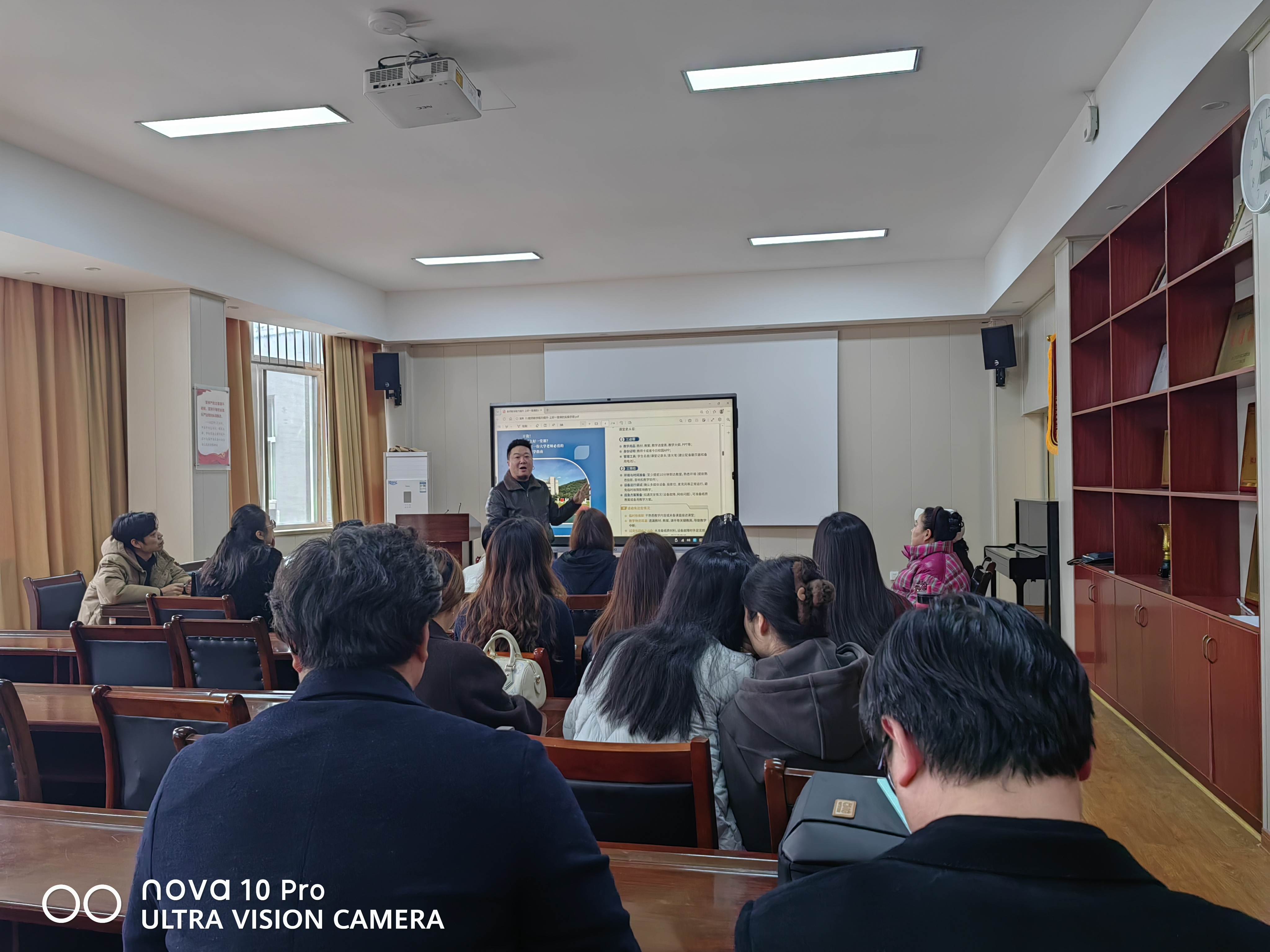 为进一步夯实教师教学基本功,规范课堂教学行为,提升课堂教学质量与育人实效,打造适配音乐学科特点的优质高效课堂,三月,音乐教育系组织全体教师开展专题教研活动,集中学习《教师教学能力提升——上好一堂课的实操手册》,活动由系副主任蒋昊主讲。