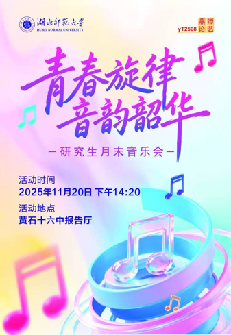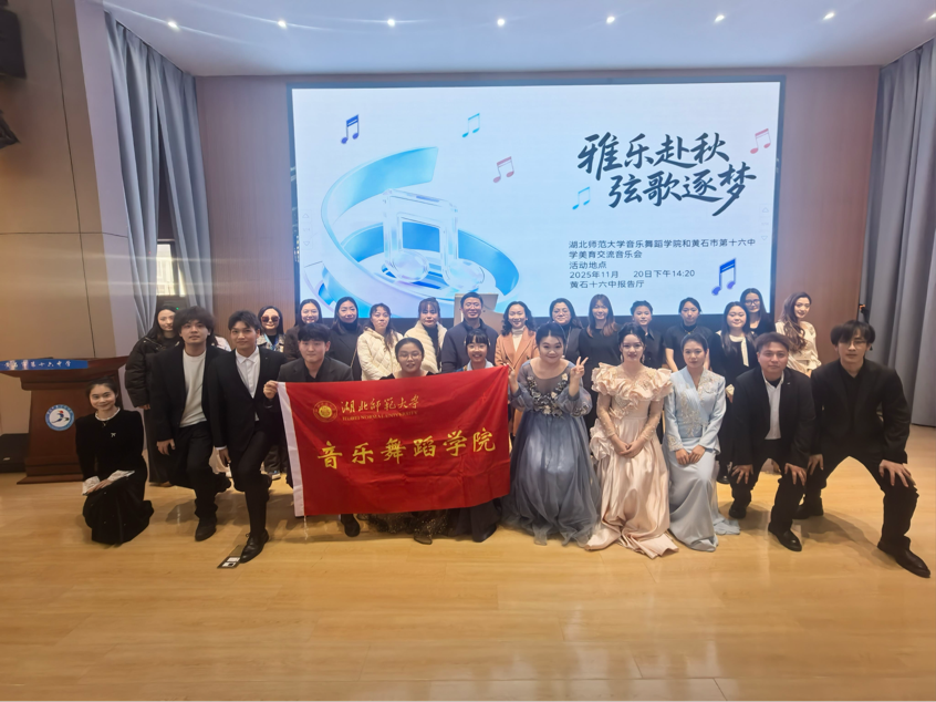 2025年11月20日下午,由音乐舞蹈学院主办的“青春旋律,音韵韶华”研究生月末音乐会在黄石十六中报告厅顺利举行。研究生们与十六中部分师生一起,以独奏、合唱、器乐合奏等形式,为现场师生展现了一场专业性与感染力兼具的美育视听盛宴,用音符传递青春理想,以乐声搭建交流桥梁。