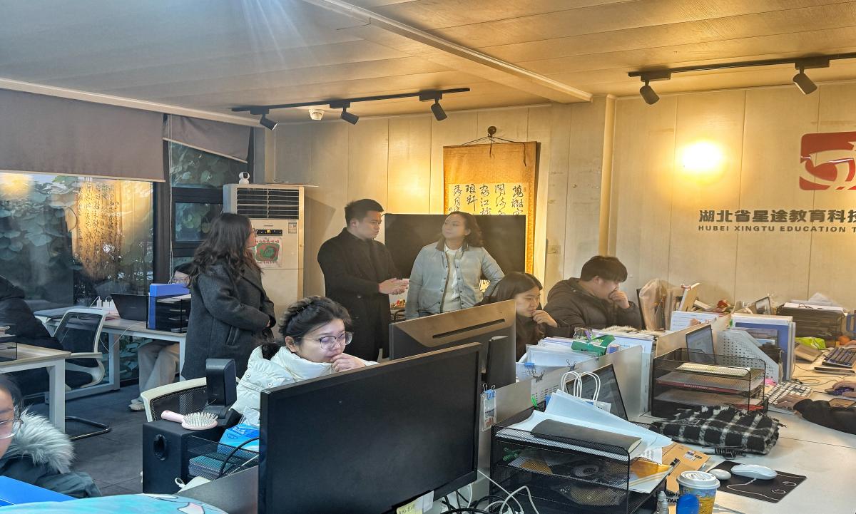 在考察湖北省星途教育科技有限责任公司时,副总经理郭帅对我院实习生的表现给予积极评价。他表示,实习生不仅展现出良好的专业基础,在综合能力方面也表现出较强的实践适应能力。郭帅还表示,公司愿意在研学项目、课程开发等方面与学院进一步加强合作。对此,黄院长表示,学院也期待与实习单位建立更稳定的校企合作机制,共同推动人才培养与实践教学的深度融合。
