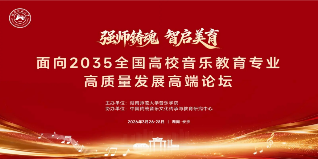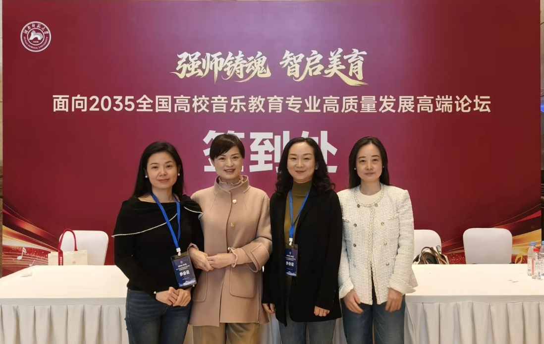 2026 年 3 月 26-28 日,由湖南师范大学音乐学院主办的“强师铸魂・智启美育 —— 面向 2035 的高校音乐教师教育高质量发展高端论坛”在长沙隆重举行。来自全国百余所高校音乐教育领域专家学者、专业负责人齐聚一堂,共探新时代音乐教师教育发展。我校音乐舞蹈学院副院长黄芳教授、高月霞教授、易秀华博士、白晨博士应邀参会,与全国同行深入交流、共话发展。