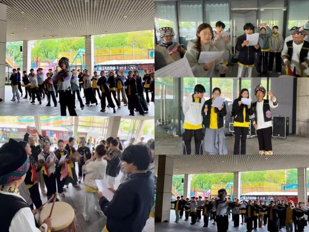 理论讲解之后,非遗老师们带领同学们解锁与器乐配套的传统舞蹈。作为舞蹈专业学生,大家在乐声中找准律动、模仿姿态、练习步伐,从抬手的弧度、转身的韵律到脚下的起落,每一个细节都带着浓郁的土家韵味。同学们跟着节奏起舞,在肢体与乐音的配合中,慢慢读懂每一个动作里的节拍密码与情感表达,体会“乐中有舞、舞以合乐”的艺术特质。老师还现场介绍了以打安庆为载体创作的原创作品《国安之音》。作品以“国家安全,人人有责”为主题,巧妙融入土家语、土家摆手舞等土家民俗文化元素,让古老非遗与时代主题相融,在热闹的锣鼓声中传递家国情怀,展现出非遗在新时代的鲜活生命力。
