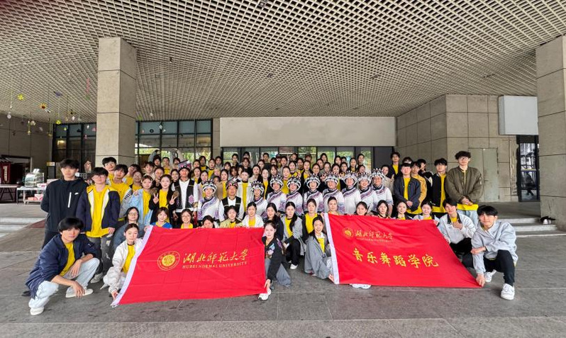 2026年4月17日,24级舞蹈系学子在州级非遗传承人谭宗钊老师的带领下,沉浸式学习州级非物质文化遗产——打安庆。在锣鼓铿锵、乐舞交融的现场,同学们聆听千年器乐古韵,触摸土家民俗文脉,在吹、打、跳、演中,感受非遗活态传承的独特魅力。